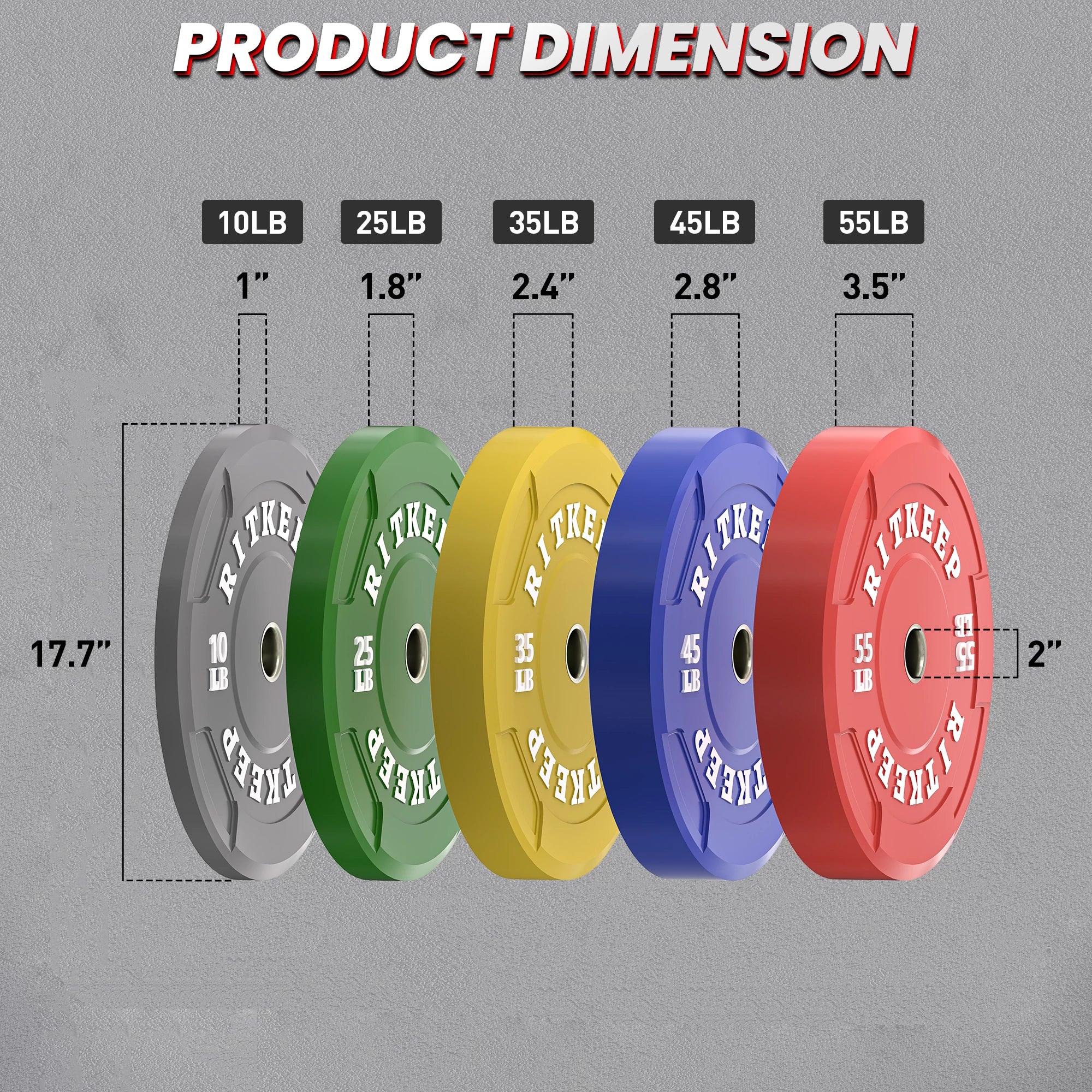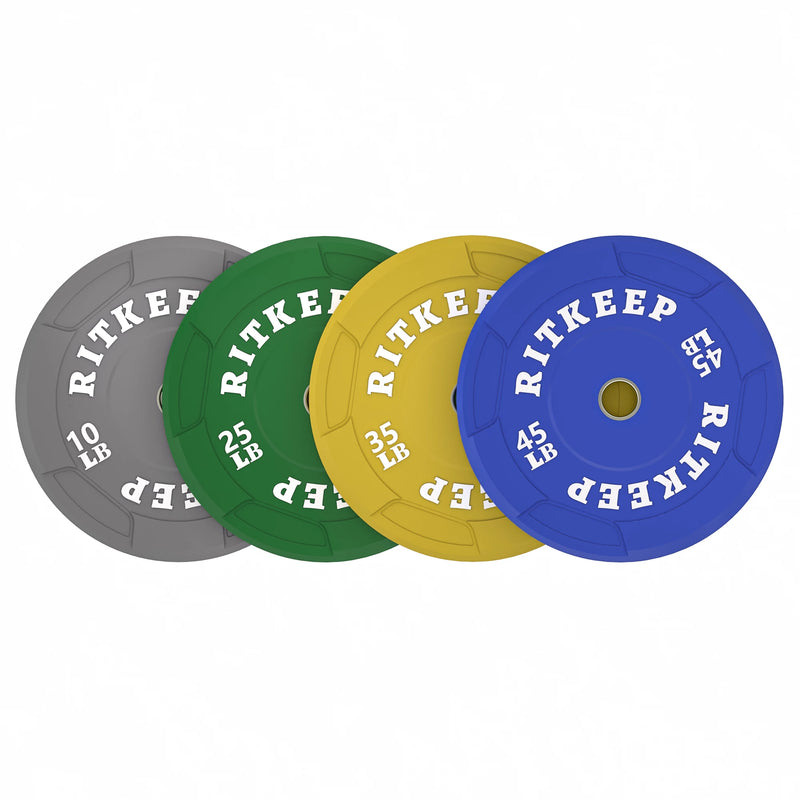 Please note: RitKeep Olympic Recessed Grip Rubber Weight Plates are sold in pairs or sets and include 10LB, 25LB, 35LB, 45LB, and 55LB weight increments.