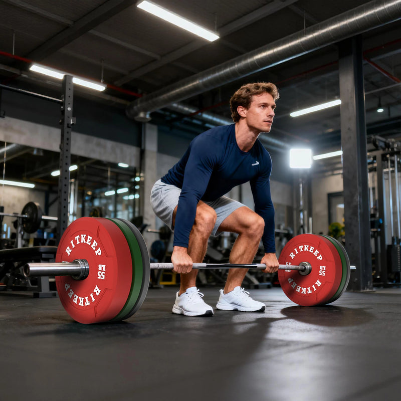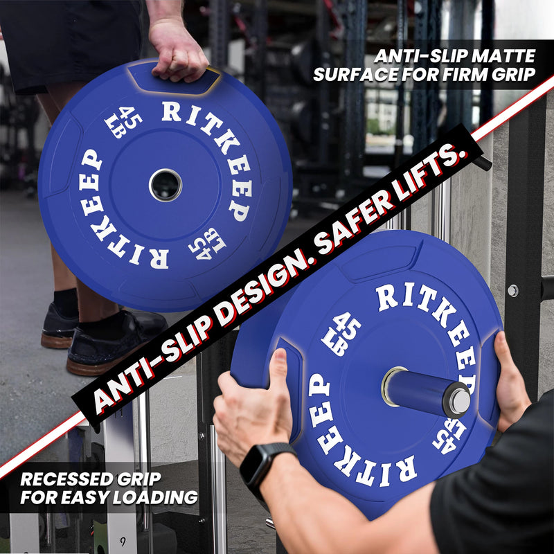 RitKeep Olympic Recessed Grip Rubber Color Weight Plates are designed for modern HIIT training, Olympic lifts, squats, and deadlifts. Suitable for fitness beginners and professional athletes, these upgraded plates allow you to train more safely and efficiently—whether in the gym or at home.