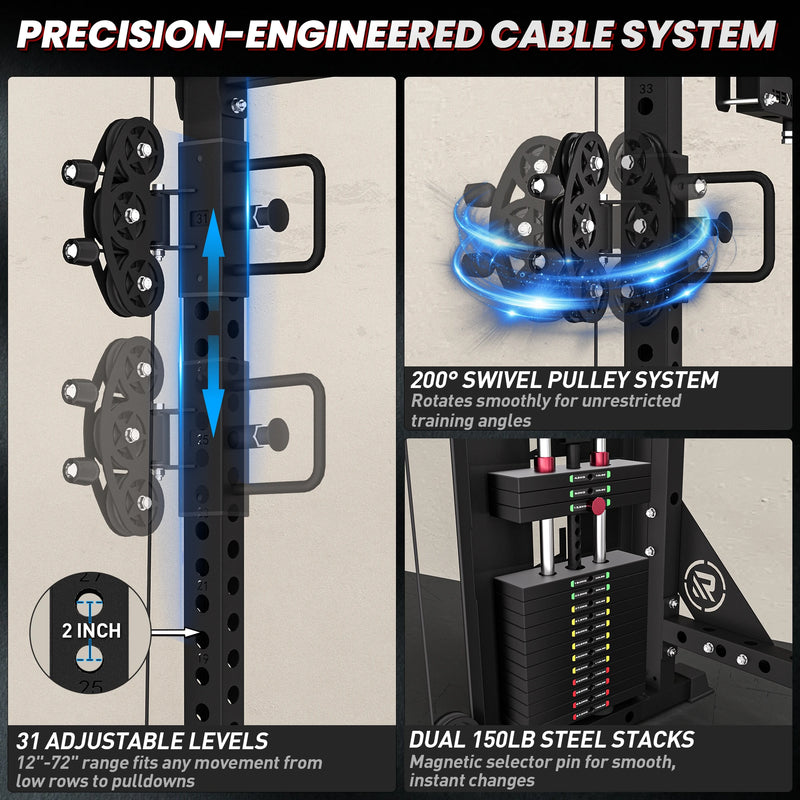 - Quick Adjustments: One-hand slider lets you change pulley height instantly, keeping your workout smooth and uninterrupted.