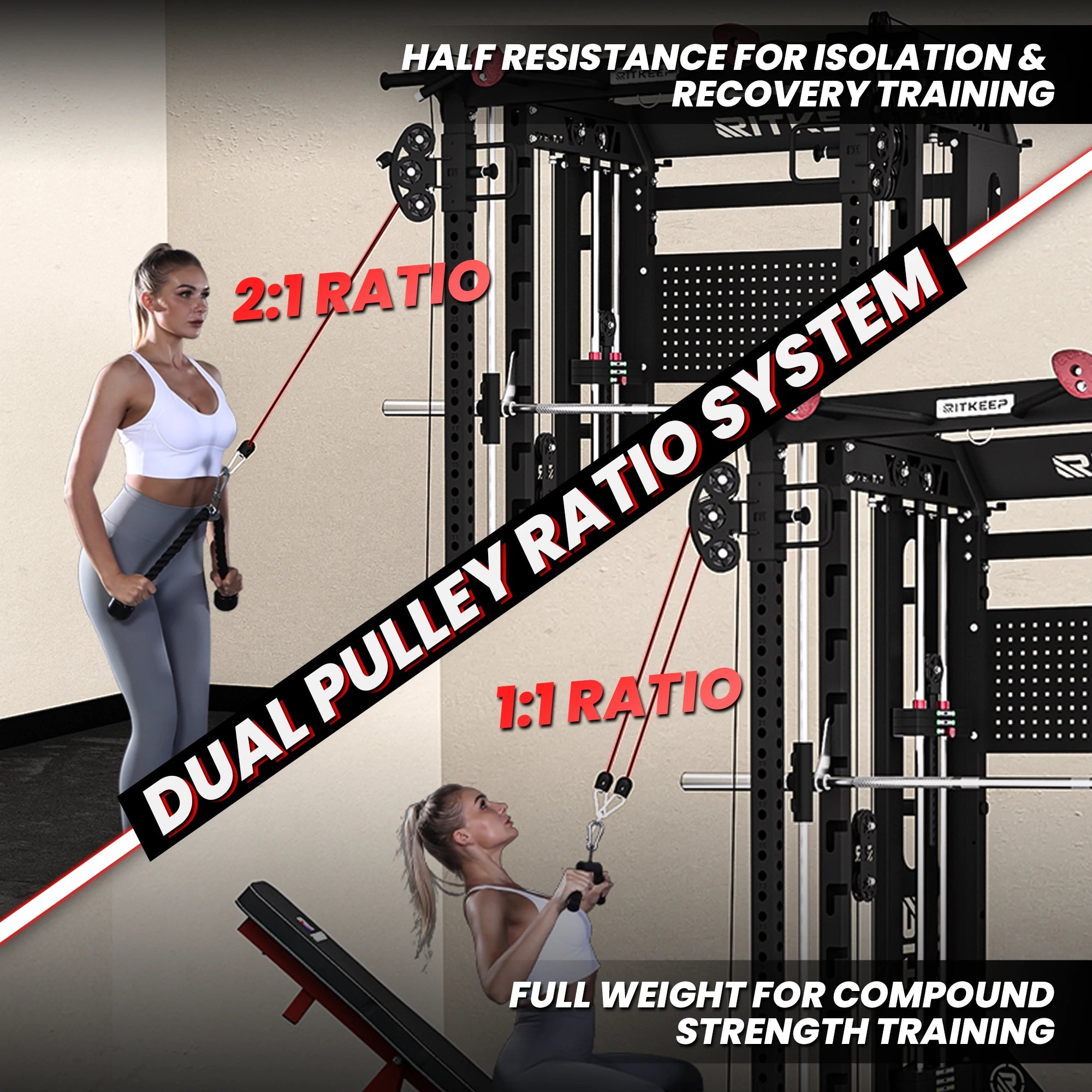 - Offers both 2:1 and 1:1 pulley ratios, easily switch between them for different resistance and motion control.