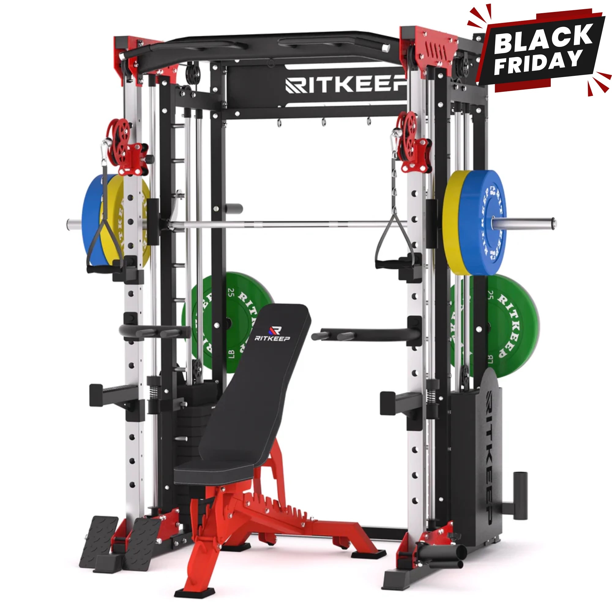 Ritkeep Fitness PMAX 5600 Smith Machine is designed to support simultaneous use by up to three people, thanks to its premium dual cable pulley system.